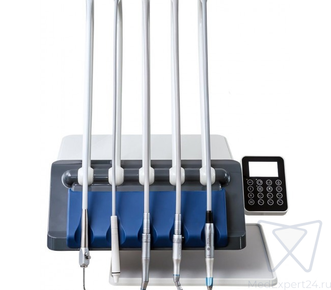 - Блок врача верхней подачи на 5 инструментов с пультом управления всеми функциями кресла одной рукой.