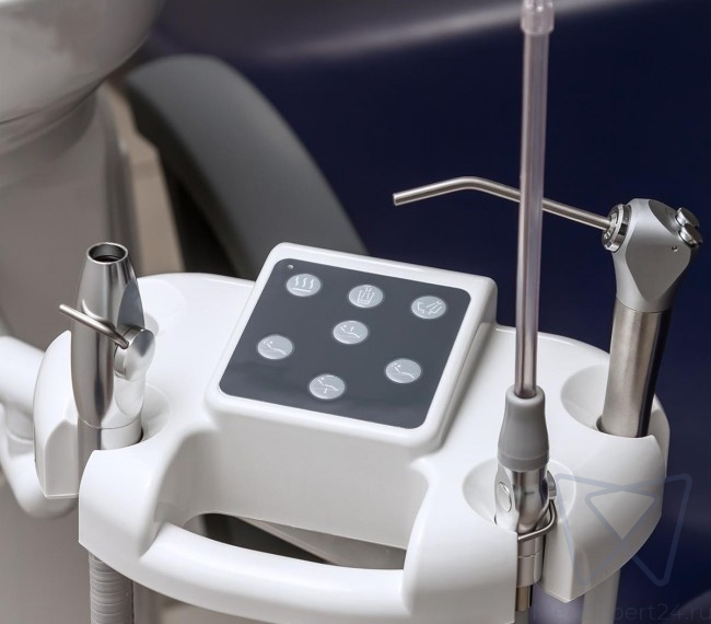 - Управление креслом, светильником и функциями плевательницы осуществляется с помощью сенсорного блока.