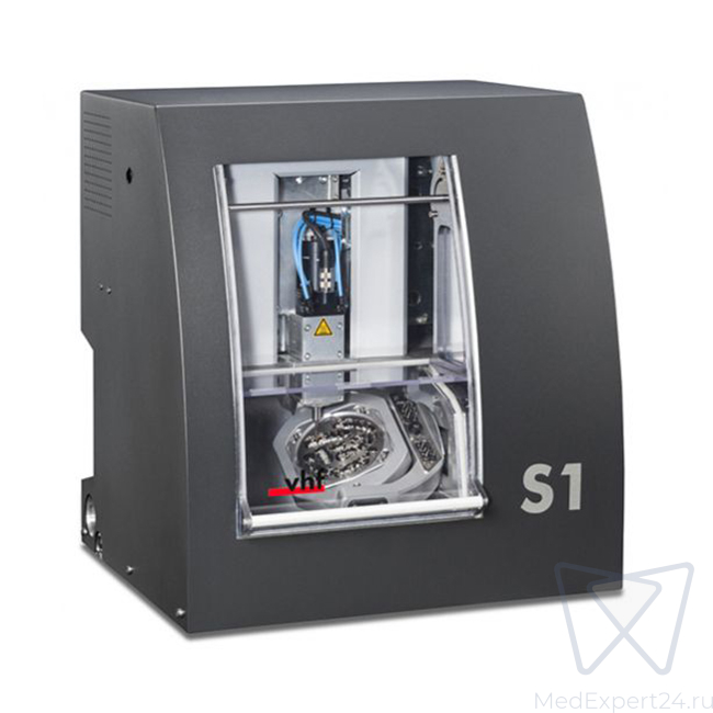 S1 Impression - универсальный стоматологический фрезерный станок от компании VHF. Имеет 5 осей, используется как для сухой, так и для влажной обработки (при подключении дополнительного модуля).