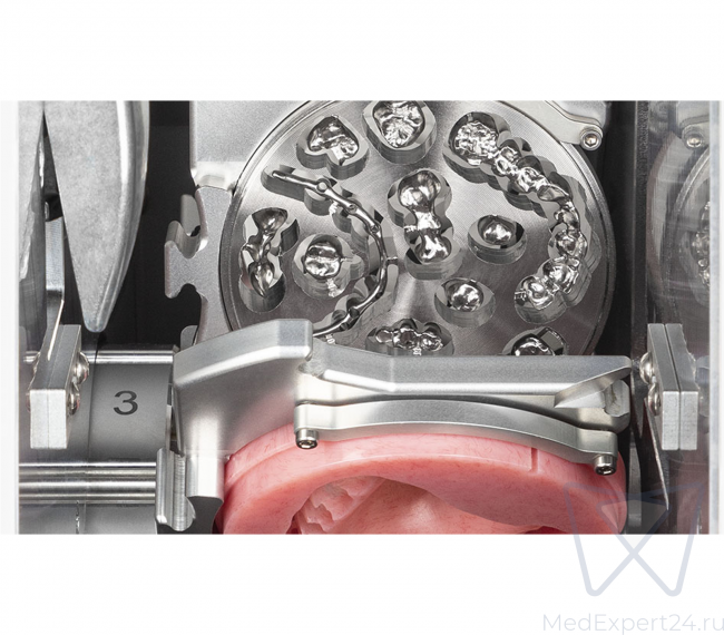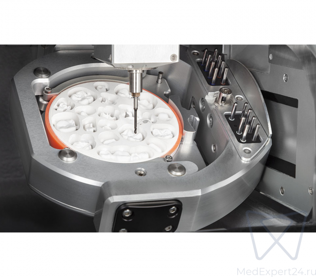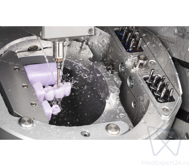 - Обрабатывает все распространённые типы материалов, включая кобальт-хром, титан, стеклокерамику.