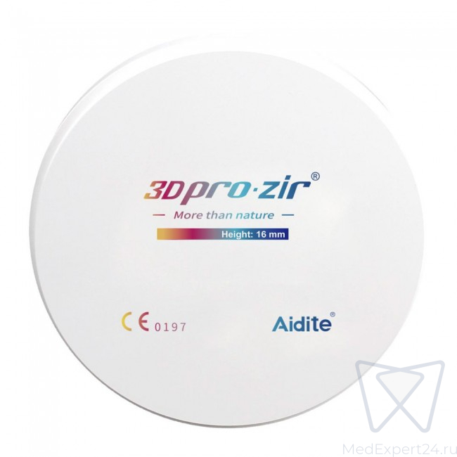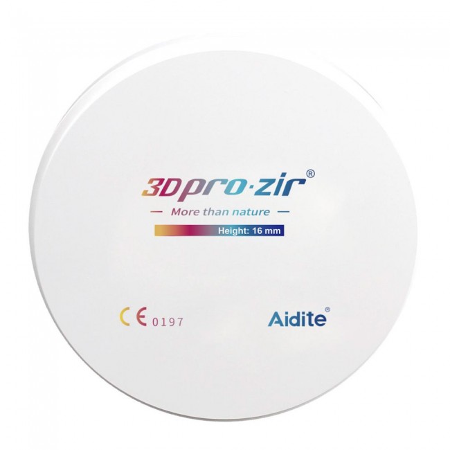Aidite 3D Pro - многослойный материал с высокой эстетикой и повышенной прочностью, шесть слоев различной цветовой насыщенности, плавный переход цвета от шейки к режущему краю. Разработан специально для изготовления цельно-анатомических высоко эстетических реставраций, обладает максимально высокой степенью прозрачности. Диаметр диска 98 мм - подходят практически для всех систем фрезерных станков.