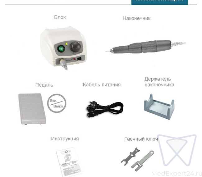 Щеточный микромотор STRONG 207В с наконечником 107 подходит для шлифовки любого материала