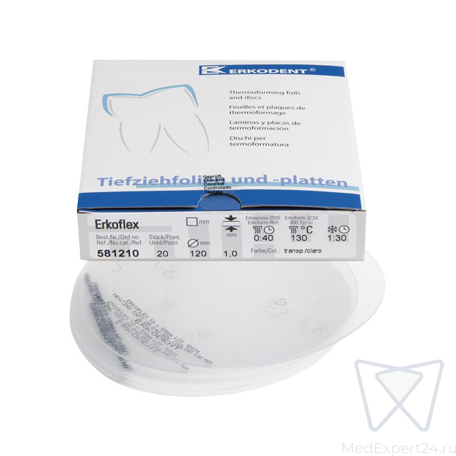 Erkoflex - термоформовочные пластины, бесцветные, толщина 1 мм, диаметр 120 мм, 20 шт. | Erkodent