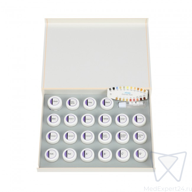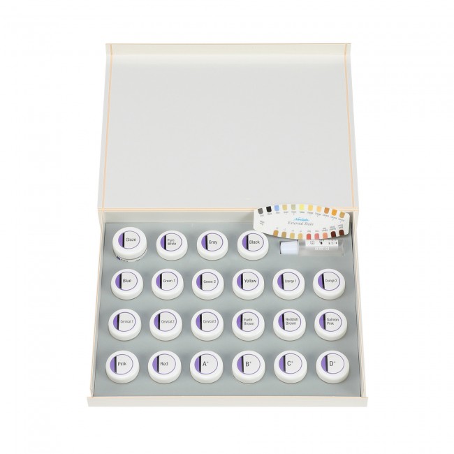 CZR External Stain Kit - набор из 21 оттенка внешних красителей. Все цвета подбирались путем оценки расцветки натуральных зубов.