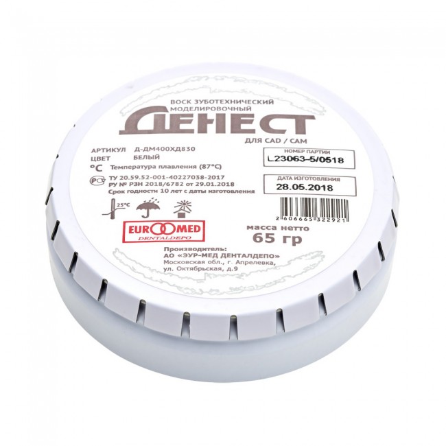 Воск зуботехнический ДЕНЕСТ моделировочный для CAD/CAM, белый, 65 г | ЭУР-МЕД Денталдепо