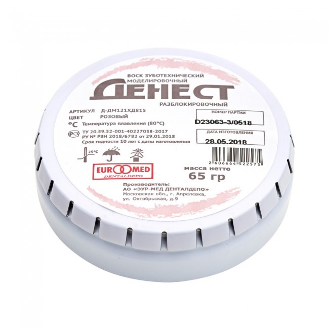 Воск зуботехнический ДЕНЕСТ моделировочный разблокировочный, розовый, 65 г | ЭУР-МЕД Денталдепо